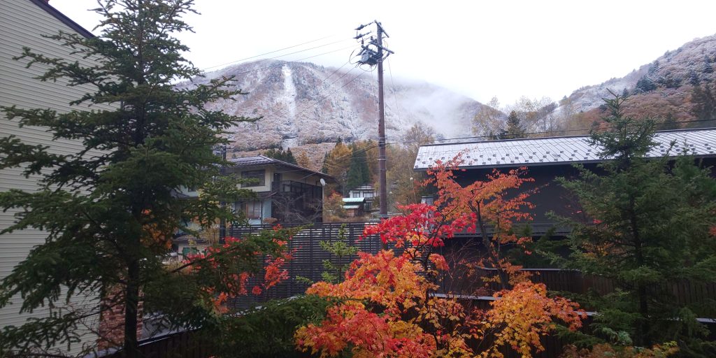 紅葉真っ盛りでしたがかなり冷え込み、宿泊翌朝には雪がうっすらと積もるほどでした。