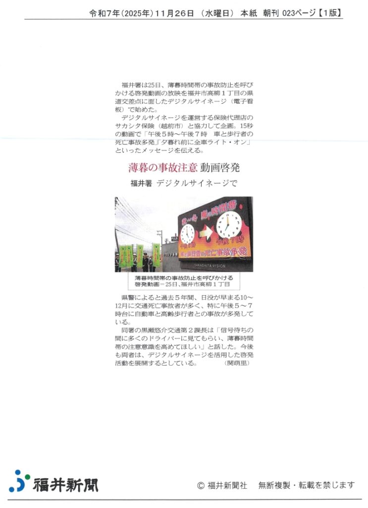 この度、こうした活動が評価され、2025年11月26日(水)付 福井新聞朝刊に 弊社の取り組みが掲載されました。